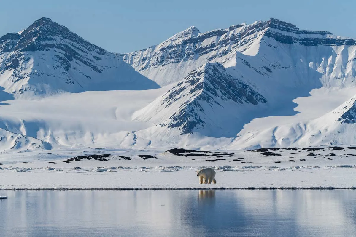 Svalbard is one of the best places on earth to see a polar bear in its undisturbed natural environment. Travelling by small expedition vessel is the perfect way to maximise the chances of a siting. There are strict regulations in place that protect wildlife and it is against the law to disturb a polar bear in its natural habitat. One of the best ways of viewing a polar bear is by boat at a safe distance. Travelling by boat allows us to explore vast stretches of coastline at a time increasing the likelihood of sightings. On land, polar bears can be extremely dangerous and landings are avoided if a polar bear is present. The area to the north of Spitsbergen is a good place to see polar bears in their natural home along with the sea ice to the north of Svalbard where they hunt for prey.