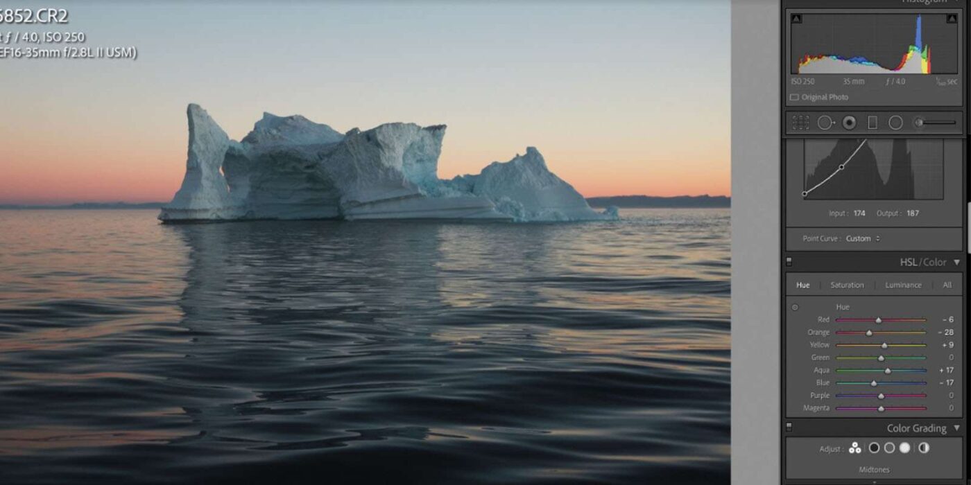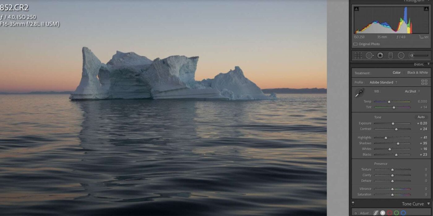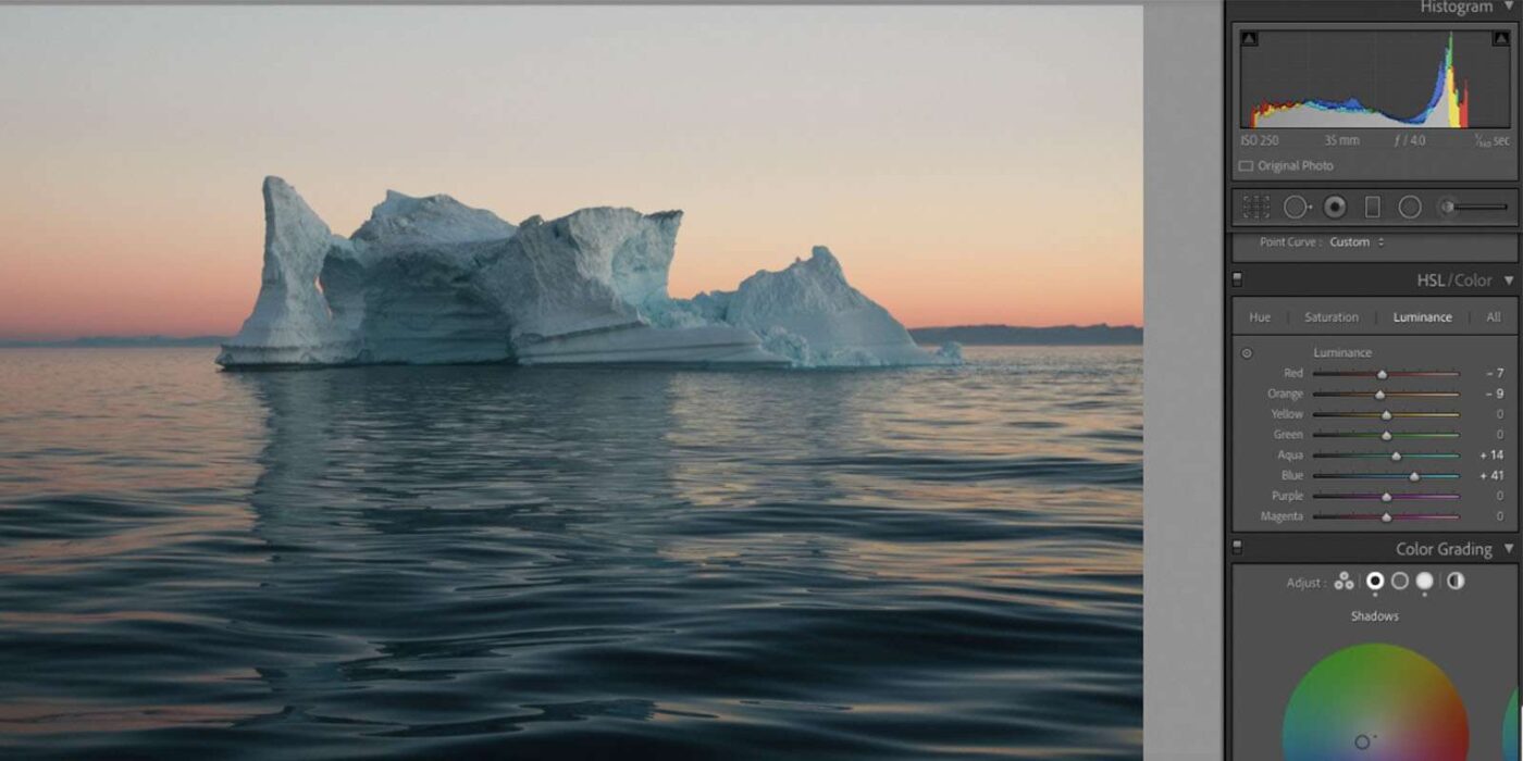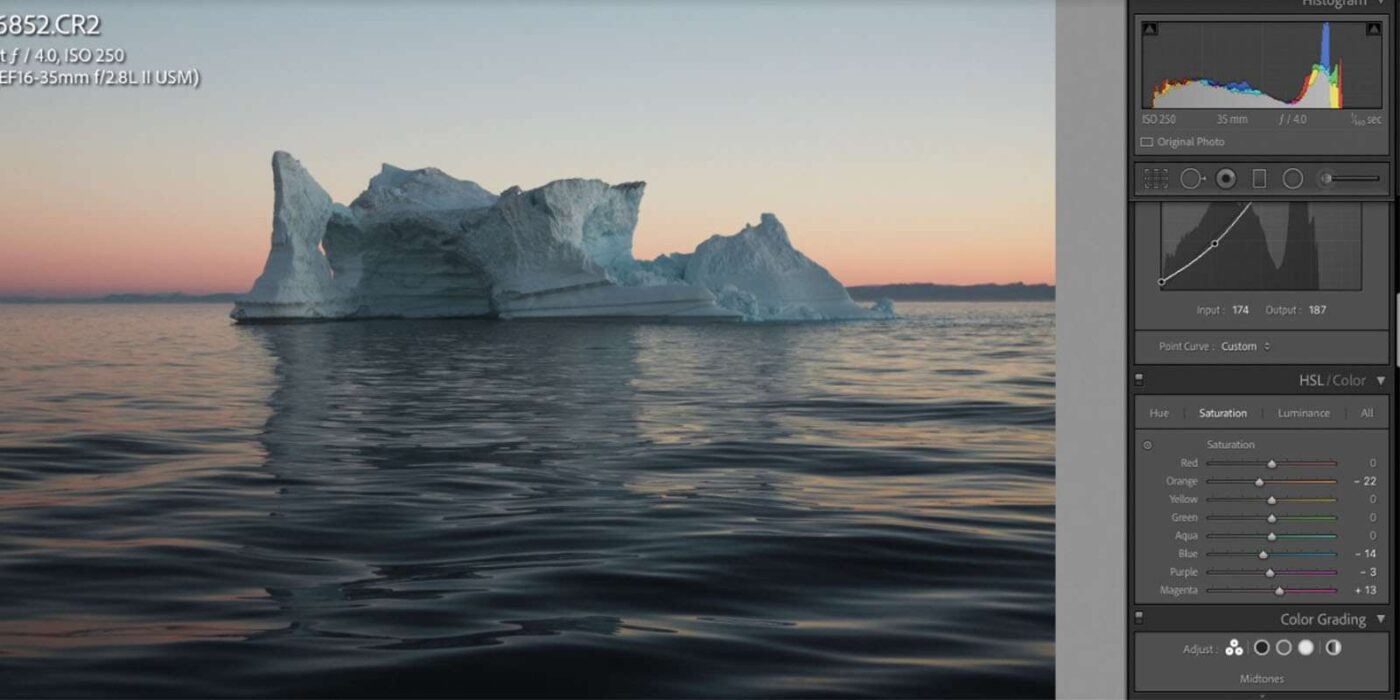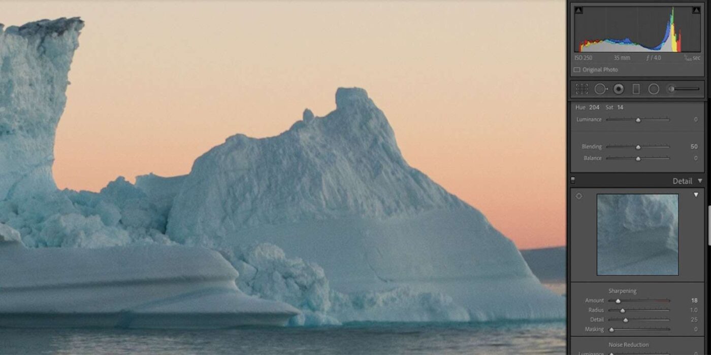 An in depth tutorial on colour grading, sharpening and denoising Arctic Landscape Images in Lightroom.