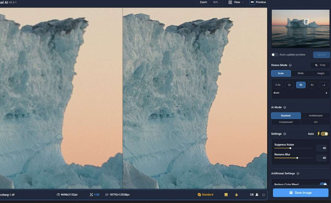 Similarly to Topaz Labs Sharpen AI, I would use Auto and then tweak the settings based on the updated output preview.