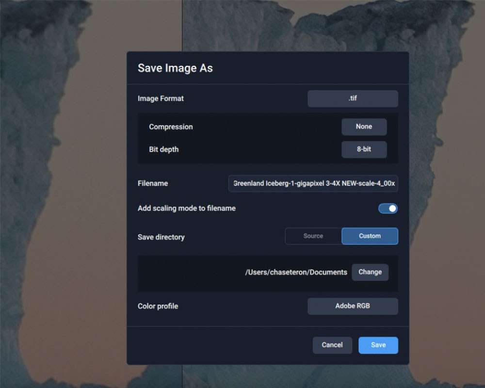 Once you?re happy with the results, click Save Image and choose the exact same settings as we chose in the Lightroom Export. You can also save this TIF as a JPEG now without compromising any colours or details just to save file size.