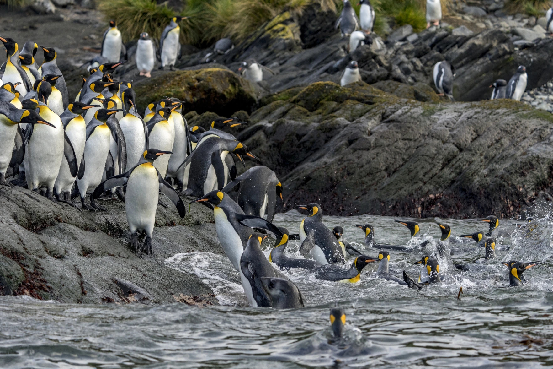 South Georgia?s rugged landscapes and beautiful beaches are home to six species of penguins, with a total population of seven million. And there is a huge number of king penguins roaming around, as well as 50% of the global elephant seal population.