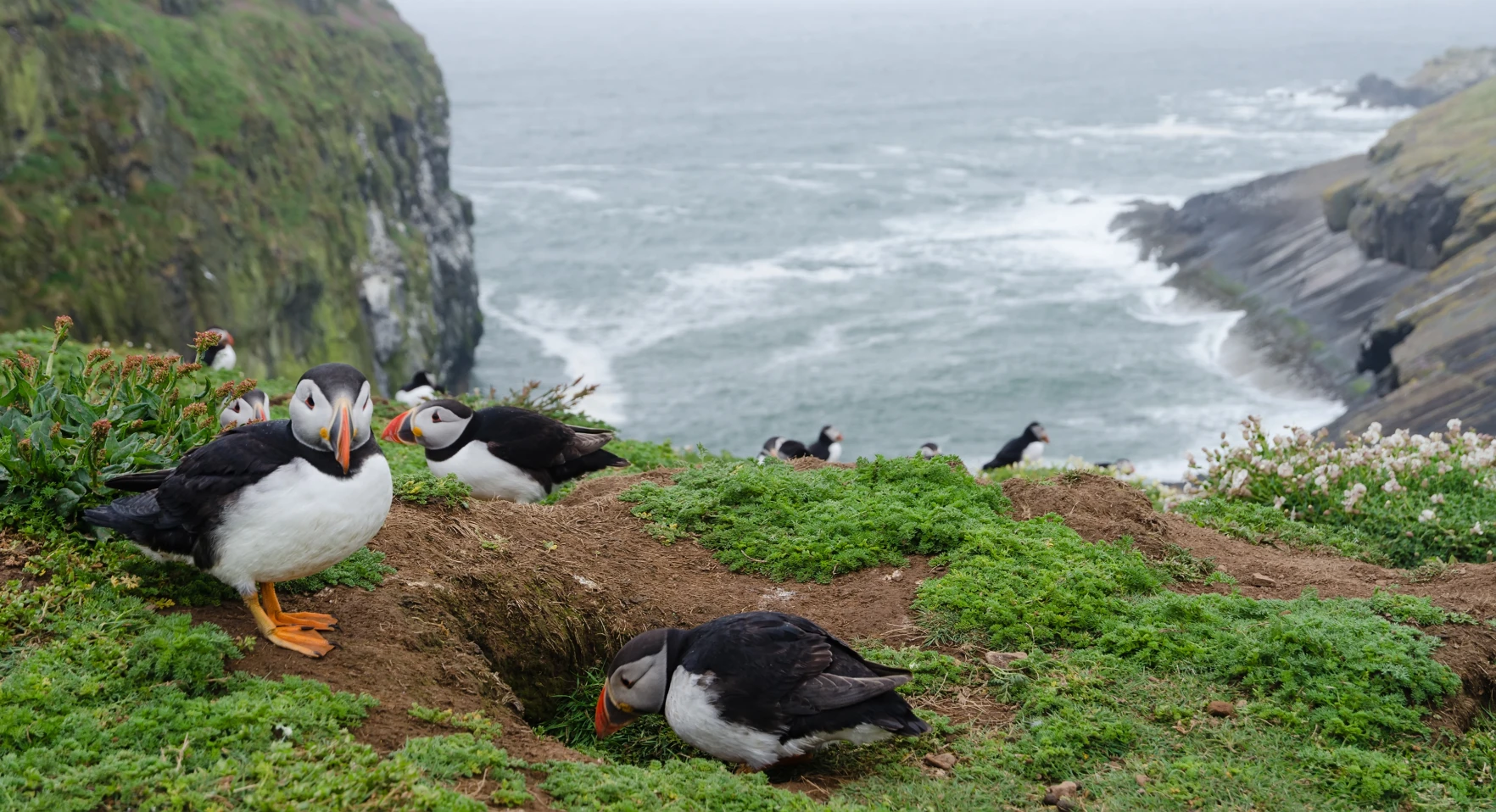 One of the best areas for photographing the seabirds in the wild is Skomer island in Wales. It?s less than a mile off the Pembrokeshire coast, with majestic cliff tops that are home to vast numbers of puffins. The Welsh island is also home to other seabirds, including gannets, fulmars, and razorbills.